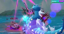 Zarude fires a beam of black and purple circles from its mouth at the opponent. | ||