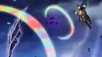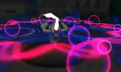 Alolan Persian fires multiple black orbs of energy with a purple outline from in front of its head at the opponent, with rainbow-colored rings of energy surrounding the black orbs as they are fired. | ||