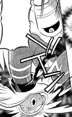 Skorupi opens its mouth and a light purple orb of energy surrounded in black and purple circles of energy appears inside it. It then fires a beam of black and purple circles of energy from the orb inside its mouth at the opponent. | ||