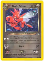 Dark Scizor (Japanese: わるいハッサム Bad Hassam) is a Metal-type Stage 1 Dark Pokémon card. It is part of the Neo Destiny expansion.