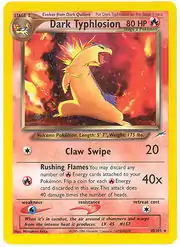 Dark Typhlosion (Japanese: わるいバクフーン Bad Bakphoon) is a Fire-type Stage 2 Dark Pokémon card. It is part of the Neo Destiny expansion.