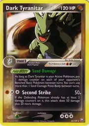 Dark Tyranitar (Japanese: わるいバンギラス Bad Bangiras) is a dual-type Fighting/Darkness Stage 2 Pokémon card. It is part of the EX Team Rocket Returns expansion.