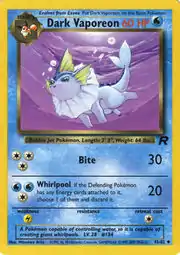 Dark Vaporeon (Japanese: わるいシャワーズ Bad Showers) is a Water-type Stage 1 Pokémon card. It was first released as part of the Team Rocket expansion.
