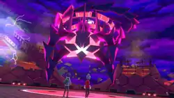 3,000 years ago, when Eternatus attempted to stay alive by absorbing Galar's energy, it caused a red light to appear. This resulted in the Darkest Day. This phenomenon, in the form of a black storm, caused Pokémon to Dynamax and Gigantamax. However, they went berserk in the process, almost destroying the region. The event ended when Eternatus was defeated by Zacian and Zamazenta.