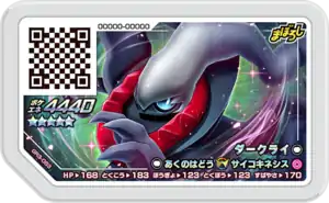 Darkrai (Japanese: ダークライ Darkrai) is a Grade 5 Pokémon Ga-Olé disk. It is part of the third Grand Rush set.
