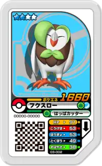Dartrix (Japanese: フクスロー Fukuthrow) is a Grade 2 Pokémon Ga-Olé disk. It is part of the third set.