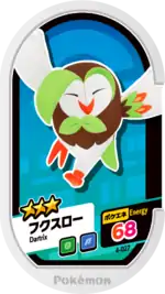 Dartrix (Japanese: フクスロー Fukuthrow) is a Grade 3 Pokémon Mezastar tag. It is part of the fourth set.