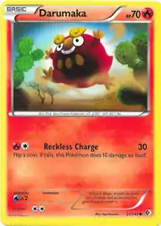 Darumaka (Japanese: ダルマッカ Darumakka) is a Fire-type Basic Pokémon card. It is part of the Boundaries Crossed expansion.