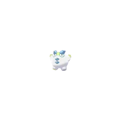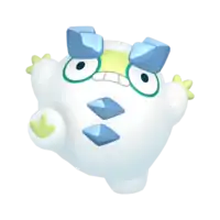 Galarian Darumaka's snow-white coat is thicker than a Unovan Darumaka's coat. It has a pair of turquoise ice crystals in place of its eyebrows. Instead of oval-shaped markings, a pair of diamond-shaped ice crystals adorn its chest like buttons. Its face, hands, and feet are blue rather than orange. Unlike its normal form, Galarian Darumaka has a timid frown instead of a mischievous smile.