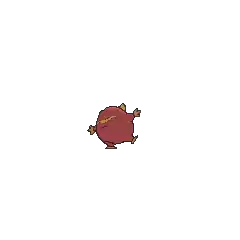 Darumaka has a flame inside its body. While this flame is burning, Darumaka is very active. It cannot calm down in this state, and thus becomes uncontrollable. As the flame shrinks, it falls asleep. It tucks in its arms and legs when it rests; during that time, it slightly sways. While it is sleeping, it cannot be tipped over no matter how much it is pushed or pulled, like a tumbler doll, which it resembles in this state. It is also known to have very warm droppings, which ancient people put in their clothes to keep themselves warm. It prefers to live in a desert environment.