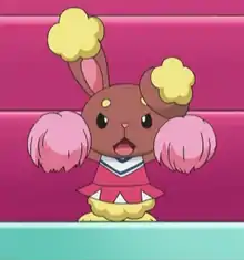 Buneary developed a crush on Pikachu after it spotted him grabbing a potato that Brock's Croagunk had tossed in the air. It is shown to be sensitive whenever Pikachu gets frustrated with its acts of affection at times that don't call for it. When around Pikachu, it gets flustered and hides its face in its fur. However, it is always cheering for Pikachu when he participates in Gym battles and, when not being used itself, for Dawn during Contests.