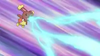In Setting the World on Its Buneary!, Buneary was close by when Ash's Pikachu was almost run over by Officer Jenny while trying to get back Ash's hat from his Aipom. It managed to rescue Pikachu and stayed near the group's campsite after that. Soon, Brock's Croagunk noticed it was hiding in the bushes and it ran off. Both Ash and Dawn rushed to catch Buneary, but Dawn was determined to battle the Pokémon after failing to catch a Buneary in her previous attempts to do so. She quickly commanded Piplup to use Bubble Beam. However, Buneary was able to dodge Piplup's moves and confuse him with Dizzy Punch before using Bounce to knock him out.