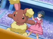 Dawn's Buneary (Japanese: ヒカリのミミロル Hikari's Mimirol) was the first wild Pokémon that Dawn caught in the Sinnoh region, and her second overall.