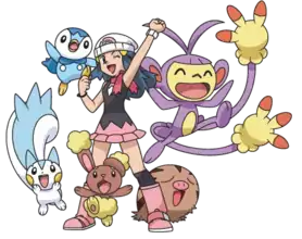 Dawn (Japanese: ヒカリ Hikari) is a ten-year-old Pokémon Coordinator from Twinleaf Town and a former traveling companion of Ash and Brock. Her goal is to become a great Top Coordinator like her mother, Johanna. Her first Pokémon was a Piplup that she received from Professor Rowan in the first episode of Pokémon the Series: Diamond and Pearl.