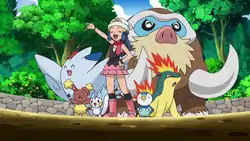 Initially, due to her lack of experience, Dawn had difficulties dealing with her Pokémon properly. For instance, she would often bicker with Piplup and her Pachirisu would hit unwanted targets with its Discharge. Even later on in Pokémon the Series: Diamond and Pearl, after most of her Pokémon had become obedient, her Mamoswine had a tendency to get angry and disobey her. It was not until Trials and Adulations! that Dawn was fully able to manage all of her Pokémon. Despite the many issues she had at first, Dawn always deeply cared for her Pokémon, especially for Piplup.