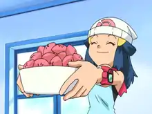 Dawn rescued Pikachu from Team Rocket after trying to catch him, thinking he was a wild Pokémon. She then looked after Pikachu until returning to Ash in When Pokémon Worlds Collide!. | ||