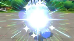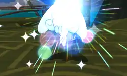 Alolan Ninetales creates a rainbow-colored sphere around its body and slams into the opponent, or Alolan Ninetales's body becomes surrounded in a field of rainbow-colored energy, which expands outwards and hits the opponent. | ||