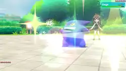Slurpuff releases a bright white light from its body. It then jumps in the air and rainbow-colored rays of light come from the white light. The rainbow-colored rays then shoot out and hit the opponent. | ||