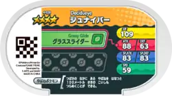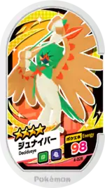 Decidueye (Japanese: ジュナイパー Junaiper) is a Grade 4 Pokémon Mezastar tag. It is part of the fourth set.