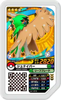 Decidueye (Japanese: ジュナイパー Junaiper) is a Grade 3 Pokémon Ga-Olé disk. It is part of the first Ultra Legend set.