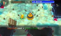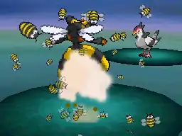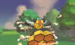Vespiquen fires many grubs from the bottom of her body straight at an attack that is coming right at her. The grubs then hit the attack at the same time and the two cancel each other out. | ||