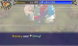 Defog (Japanese: きりばらい Fog Wipe) is a non-damaging Flying-type move introduced in Generation IV. It was HM05 in Diamond, Pearl, and Platinum. It is TM97 in Brilliant Diamond and Shining Pearl.