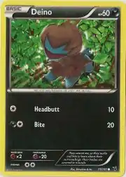 Headbutt and Bite are both moves in the Pokémon games that Deino can learn. This card's Pokédex entry comes from Pokémon White.