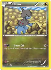 Deino (Japanese: モノズ Monozu) is a Dragon-type Basic Pokémon card. It was first released as part of the Phantom Forces expansion.
