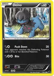 Deino (Japanese: モノズ Monozu) is a Darkness-type Basic Pokémon card. It is part of the Plasma Freeze expansion.