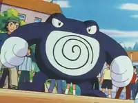 His shouts alerted Ash and his friends, and together, they chased down the trio. Misty's Corsola helped free Poliwrath from Team Rocket's control device. Afterwards, Poliwrath defeated Team Rocket alongside Misty's newly evolved Politoed, as well as Ash's Phanpy and Pikachu.