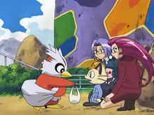 Delibird (Japanese: デリバード Delibird) is a Pokémon owned by Team Rocket that followed around Jessie, James, and Meowth during the latter part of the Johto saga. It is known to use Present on Ash and his friends repeatedly.