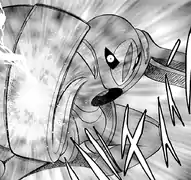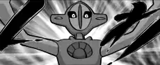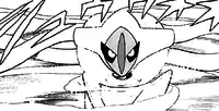 In Going Green, Organism No. 2 creates its Delta Shield (Japanese: 三角形防御壁(デルタシールド) Delta Shield) to help protect it while recovering. This is cut short by the arrival of Giovanni, who came to the island in order to capture the DNA Pokémon. Giovanni sends out his Aggron to attack Organism No. 2, claiming that the power of outer space belongs to him. Organism No. 2 manages to get out of the way with Teleport. Although he praises Organism No. 2's skills and notes how the Delta Shield will protect it from attacks while also healing it, Giovanni states he can read Organism No. 2 like an open book. He sends out his Beedrill and has it use Agility so it can outspeed Organism No. 2. Organism No. 2 dodges Beedrill's attacks, but Aggron manages to smash the Delta Shield with a Brick Break. Giovanni then throws a Poké Ball at Organism No. 2, successfully capturing it.