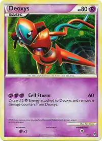 Deoxys (Japanese: デオキシス Deoxys) is a Psychic-type Basic Pokémon card. It is part of the Call of Legends expansion.