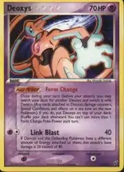 Deoxys (Japanese: デオキシス Deoxys) is a Psychic-type Basic Pokémon card. It is part of the EX Deoxys expansion.