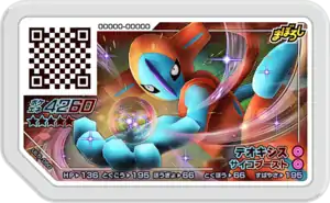 Deoxys (Japanese: デオキシス Deoxys) is a Grade 5 Pokémon Ga-Olé disk. It is part of the fifth Ultra Legend set.