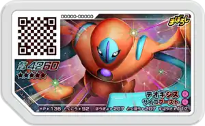 Deoxys (Japanese: デオキシス Deoxys) is a Grade 5 Pokémon Ga-Olé disk. It is part of the fifth Ultra Legend set.