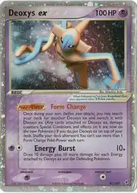 Deoxys ex (Japanese: デオキシスex Deoxys ex) is a Psychic-type Basic Pokémon-ex card. It was first released as part of the EX Deoxys expansion.