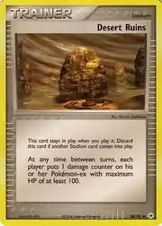 Desert Ruins (Japanese: 砂漠の遺跡 Remains of the Desert) is a Stadium card. It is part of the EX Hidden Legends expansion.