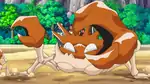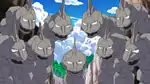 After the group found each other, they had to deal with several more Onix. As Dawn reunited with Piplup, she took part in battling the Onix. As Ash, his friends, and Meloetta were no match for the Onix, the Shiny Onix appeared and ordered the normal-colored Onix away from Ash and his friends. After the group got to see the Shiny Onix, Jervis took them back to Cynthia's villa.