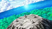 The group rented a boat from neighboring Frond Island after learning about an old pirate story from Alexa, they later arrived on this island to go treasure hunting. The group stumbled across an abandoned ship and a secret door. Cilan deciphered the code and they entered in the as of yet undiscovered part of the island. While there, they got attacked by some wild Pokémon which Ash and Iris fended off with their Pokémon. The group then befriended three Eevee.