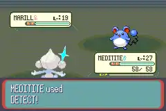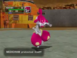 | Meditite dodges the opponent's attacks. Sometimes, its eyes glow green. When used multiple times, the move may sometimes fail. | |||