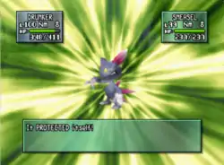 - In Generation II, after the appearance of the "[Pokémon's name] Protecting itself!" message, another message saying that the opponent's Pokémon's move missed appears. The second message was removed in Generation III.