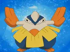Hariyama is Brawly's first known Pokémon. He debuted as a Makuhita surfing with his Trainer. Later, he evolved in Brawly's Gym battle against Sapphire, but it wasn't enough to win the battle. Since then, he has been used in several other battles. | ||