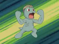 In Ash and Brawly's rematch, Machop was again used first. It began to overpower Treecko, but fell to Ash's newly-caught Corphish. It reappeared in a flashback in Which Wurmple's Which?. Machop's known moves are Cross Chop and Karate Chop. | ||