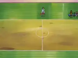 Later, Ash finally got his desired Gym battle, which was set to be a two-on-two battle. First, Ash chose Taillow against Brawly's Machop, but lost the round despite the type advantage. Next Ash used Treecko, which beat Machop, and then went up against Brawly's Makuhita. During the battle, Makuhita suddenly evolved into Hariyama, and proceeded to easily defeat Treecko. Ash was disheartened by this defeat, but Brawly encouraged him to go on.
