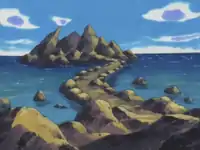 Dewford Island appeared from Sharpedo Attack! to Just One of the Geysers. Its main settlement, Dewford Town, features a three-tiered Pokémon Center and the Dewford Gym. Ash sought to obtain the Knuckle Badge from Brawly, but failed in his first attempt in Brave the Wave. He remained on the island for a lengthy period of time, which he spent training, and finally defeated the Gym Leader in Just One of the Geysers. The rematch took place on Brawly's own practice field, a rocky island connected to Dewford Island by a land bridge revealed during low tide.