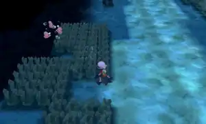 Occasionally while the player is walking, Pokémon that are hiding nearby in tall grass or similar natural hazards may partially reveal themselves to the player's view in the overworld. These are hidden Pokémon.