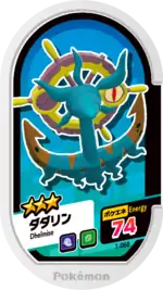 Dhelmise (Japanese: ダダリン Dadarin) is a Grade 3 Pokémon Mezastar tag. It is part of the first set.