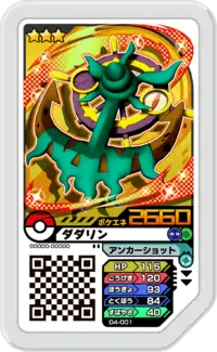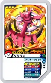 Dhelmise (Japanese: ダダリン Dadarin) is a Grade 3 Pokémon Ga-Olé disk. It is part of the fourth Dash set.