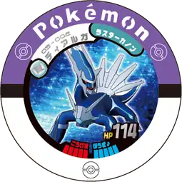 Dialga (Japanese: ディアルガ Dialga) is a Pokémon Battrio puck. It is part of the Giratina Tremor expansion.